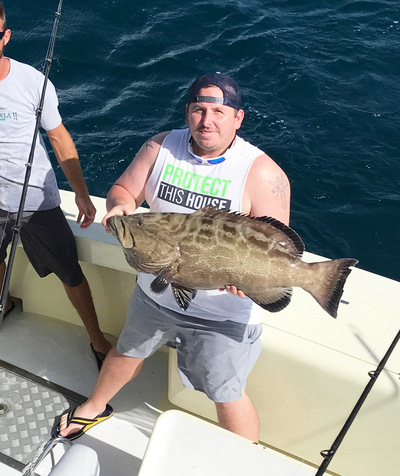 Our captain pulled up to one of our honey holes to see some great marks on the fish finder. We knew there was some fish home and it was just a matter of time before they would bite. We proceeded to catch not 1, not 2, but 3 black grouper! The anglers did great putting the heat on the fish to pull them off their holes.