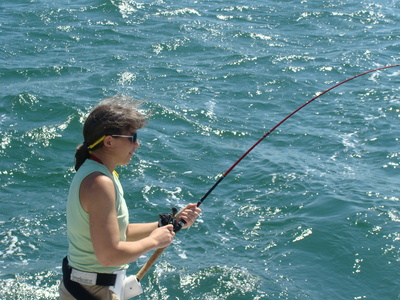 What I'm doing now is showing my regular clients that taking on the abundance of bluefish we have using light tackle can give an angler as much of a challenge as any big striped bass could. It can also give that action you need to keep a family busy landing fish. Kids can be an impatient lot. The hard fighting bluefish keeps them concentrated on getting their fish to the boat. The bluefish was and really still is the mainstay of our industry fishing Cape Cod Bay. When I listen to what the other Captains say over the radio the statement,"well, there is always the bluefish..." is repeated often. The big stripers will be back, but until then hooking up on the bluefish while trolling 6 lb. test line will more than keep our most seasoned angler happy.