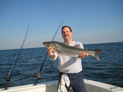 Today we had out Dennis Conner and his friends Tim and Mark we worked around south of the Squan inlet and had great readings but finished up with 4 keepers and the largest going 32" the ratio of Bass to yellow eyed demons was easily 18 to 20 one, all of the keepers were on the troll, lots of shorts on the jig but when we found some good readings and we jigged on them it was shorts and big demons. It was a busy day with lots of fish. We dont know if it was the full moon or what but you could read the fish but just couldnt get them to bite We will be at again on Friday maybe the Bass will be more active