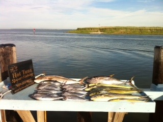Captain Bob Gerkens reports he has returned the "Hot Tuna" to Beach Haven after its winter sojourn in North Carolina. The trip north along the continental shelf was turned into a 48 hour tune-up fishing trip for Capt. Bob, Benjamin Peterson of Jacksonville, NC, Wayne Smith, and Captain John Lewis of the "Insatiable." The meat catch included 12 blackfin tuna, 6 mahi-mahi, a yellowfin tuna and one amberjack. A black tip shark and additional blackfin tuna were released.