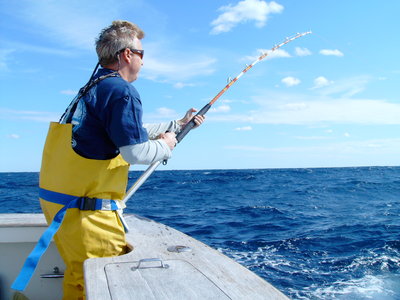Captain Lindsay Fuller on the "June Bug" had an offshore trolling trip over the weekend to the canyons and managed to put two yellowfin tuna in the box. The trip was originally slated to be an overnight combination chunking and trolling trip, but the fierce sea conditions nixed that plan.