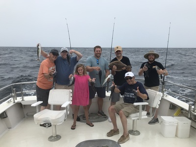 Closer to shore, the “Starfish” with Captain George at the helm, had a group of seven anglers from Pennsylvania out on a beautiful weather day. The fish were ready to bite, and over 80 fish were caught. The party returned to the dock with nine keeper black sea bass, one fluke and two Spanish mackerel in the box.