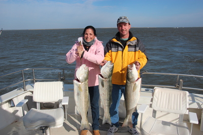 Captain George Finck of "Sparetime Charters" took Ray McVry and five of his friends trolling for Striped Bass recently. They had a great trip, limiting out on striped bass with the smallest fish measuring 33-inches. They also picked up a couple of nice bluefish.