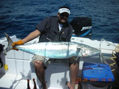 Last week we had a record catch on the reef bringing aboard a King mackeral over 50 pounds. What a prize catch this was! We had quite a few Sailfish bites jumping a few off and one almost making it into the boat. My friend and client Nick Doup did it again bringing his good fortune from Boston and catching an 84 inch Swordfish bigger than his last catch of 275 pounds. The Swordfish ate a live bait on the tip rod and was boated in 2 1/2 hours. He has the pics of this one so you will have to wait until I get them.