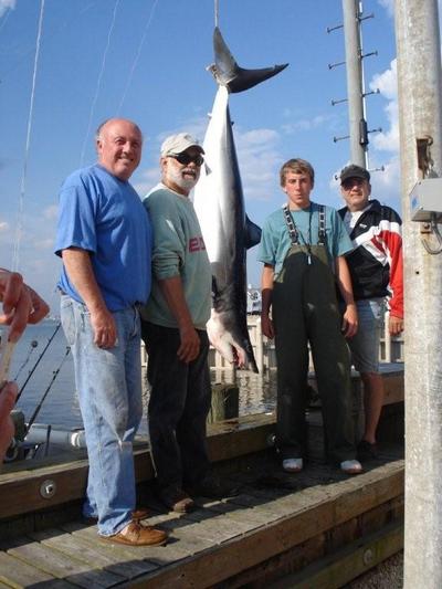 Another day Captain Fran shared the Huffnagle party, a large group from Pa., on the "Cousins" with Captain Adam Nowalsky on the Karen Ann II." Capt. Adam fished the waters from 65 to 80 feet and Captain Fran took the waters from 50 to 65 feet.