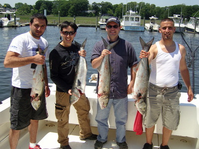 Had a back bay charter today with Anthony, Darryl, Pedro and Ellie had incoming tide and good weather conditions. We started at the back of the bay and work our way towards Romer, Not much to show but a bunch of bluefish to show for our efforts. Water was brown in color and all the blues were spitting up shrimp?