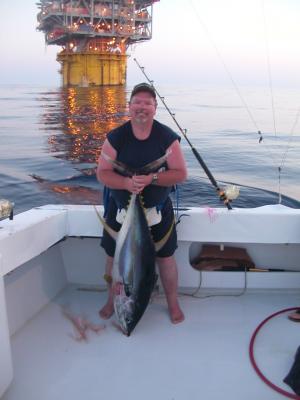 We have been catching nice yellowfin tunas, blackfin tunas, amberjack, grouper, and scamp on the 2 day trips. The weather was beautiful and the fishing was good on this trip. We went about 80 miles south of Dauphin Island to some deep rigs and were not disappointed. We are taking the 60 ft. LADY ANN and the 65 ft. ESCAPE on these trips. Check out our web site: