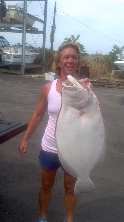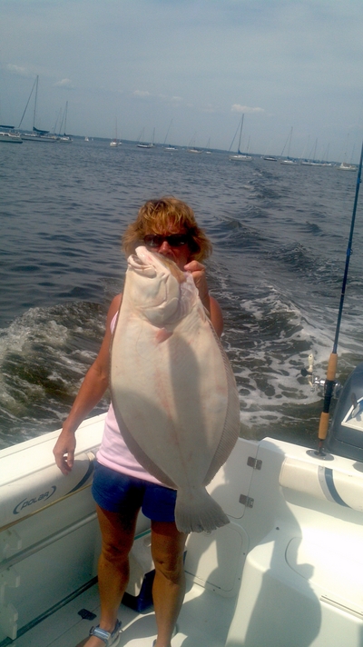 1st drift and April nails our biggest fluke ever a solids 12 pound 14 ounce beauty! With that fish in the well we picked away at solid keepers working the same area. When we headed in we cleaned up the boat (Thanks Kevin Kennedy)and headed to an official scale at the Tackle Box.