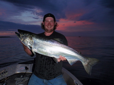 We have been catching big king salmon on 7' med action spinning rods and jigs/plastics for the past week and it will only get better as the water cools down. 4-5" gulp minnows on 1/4-3/8oz jig heads has been the best technique. I drive around and look for baitfish on my locater. Once I find what Im looking for we cast and jig off the bottom. When the fish come in strong like they did this week you can stay on bait and fish all day most days. we have been fishing in 20-40 FOW, but the fish will move in as shallow as 2 FOW.