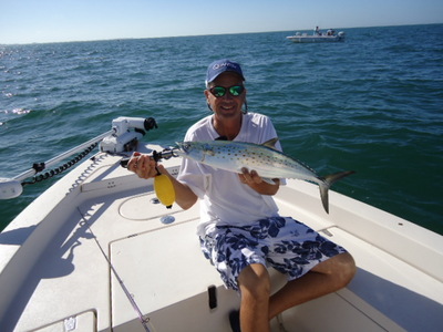 While running the Egmont ship channel to the Gulf we encountered hundreds of terns diving, oddly there were no Bonita, Mackerel, Jacks just glass minnows by the millions. We finally set up on hard bottom in 20' just North of the beautiful Don Cesar hotel.