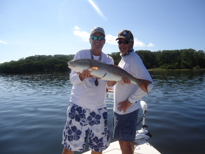 Big Redfish was today's target but needing the tide to rise we started by targeting Trout Sharks and Ladyfish. The action was hot from the begining with numerous species hammering our live baits. We switched to lures and had fish flying everywhere.