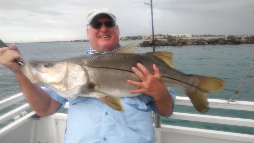 We have been spending a lot of time on charters the past few months live baiting with greenies and pilchards on circle hooks south in the St. Lucie Inlet area. These charters require an early departure at 6 or 6:30 am so I can purchase them before they sell out and not waste time catching baitfish. Also these livebait trips have a 3 person max. Snook bite has been strong on most days with some large jack crevalles, cubera snapper and tarpon in the area too. We have caught snook over 40" and this trend should continue thru mid-October.