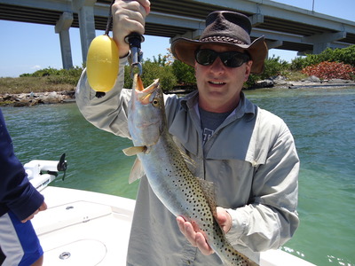 Next up we chased trout on shallow grass flats. Local flats are loaded with trout, jacks, sharks, flounder, ladyfish, blues all eager to chase live bait and lures.