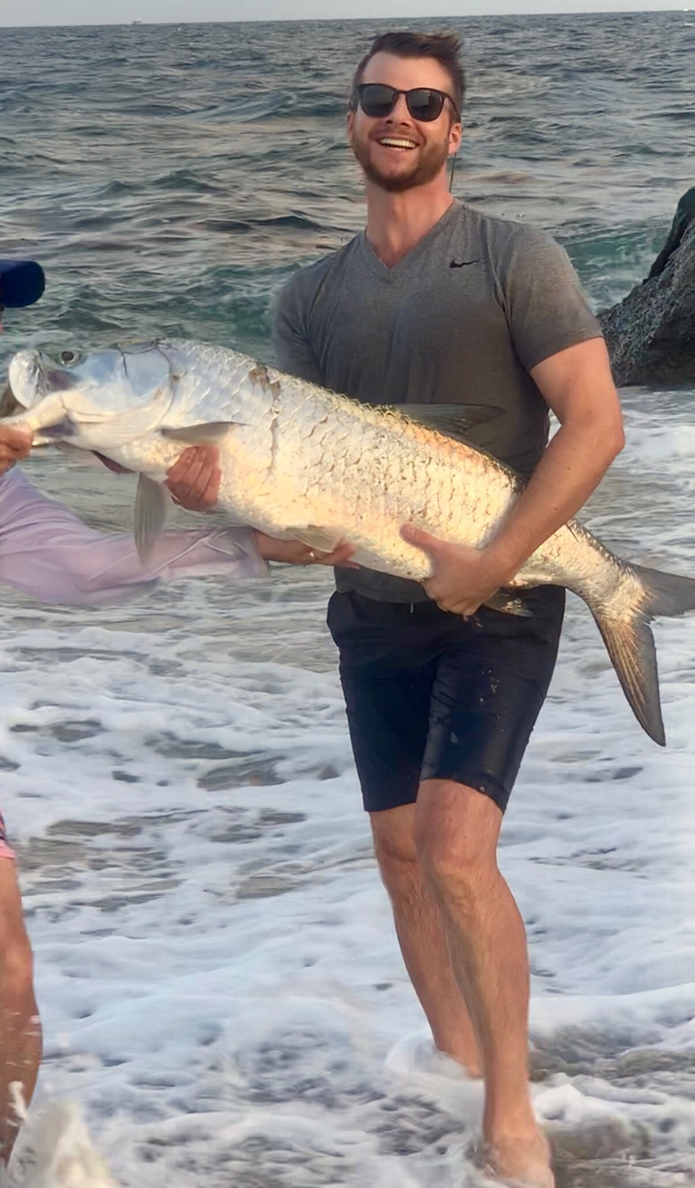 put on I would say a nice round 10 inch nearly dead Mullet, and on my third cast hooked up with this beauty. About 30 to 40 minutes later we landed this beautiful Tarpon. I was grateful to just happen to have Reel Reports nearby for the assist. They were a great help, it was absolutely unreal!!