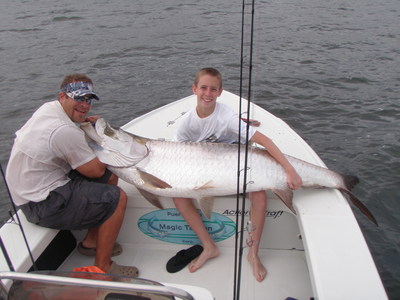Today (January 25, 2010) fishing was great . Our customers with only 13 year old land a Tarpon of 120 lbs . This fish was full of energy and did not give us a break until the end. All this happen in the San Jose Lagoon and Torrecillas Lagoons only 5 min from the International Airport and 5 to 10 minutes from the mayor hotel of the city. If you have any question feels free to call us at 787-644-1444 or send us an e-mail to prmt@puertoricomagictarpon.com.