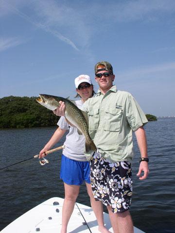 A Big Trout Story: Over my 30 years of guiding , I've developed a strong love for shallow water fishing and push poling to find fish. I probably have more hours on my push pole than on my motor. It always amazes me why a guide would buy a $ 55,000.00 tower boat with trolling motors on the trim tabs and try to fish in a foot and half of water where a flats boat goes . Or the guide or average angler goes barging into an area to fine fish with a trolling motor and goes over all the fish. Monday January 5th was a normal day on the water, I had a fly and bait charter with a Captain from Maine trying to get out of the cold. After a couple of hours throwing the fly for trout we decided to try some tailing reds. I found a large school of mullet out away from a small mangrove island this time of year , it's a pleasant surprise to find a school of mullet that will hold still after being chased by cast netters. Has any body noticed that now that the news papers, guides association and CCA have put the gill netters out of business more and more local fishing guides have got their restricted species license. How did they get there licenses ? Maybe the local mullet wrappers should investigate the hypocrites .