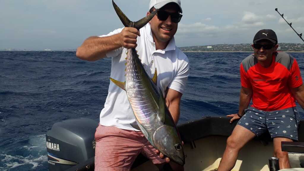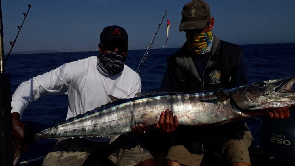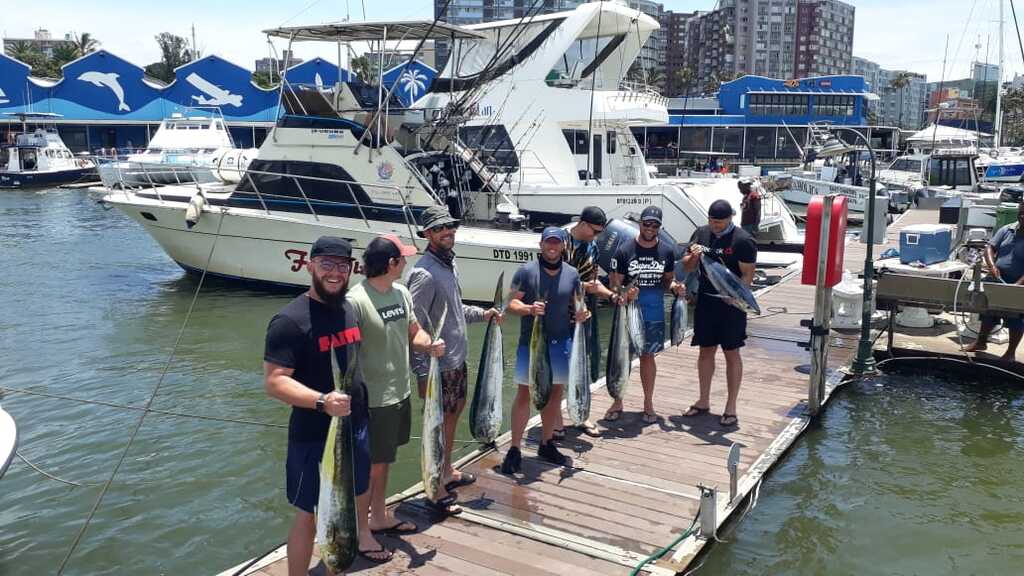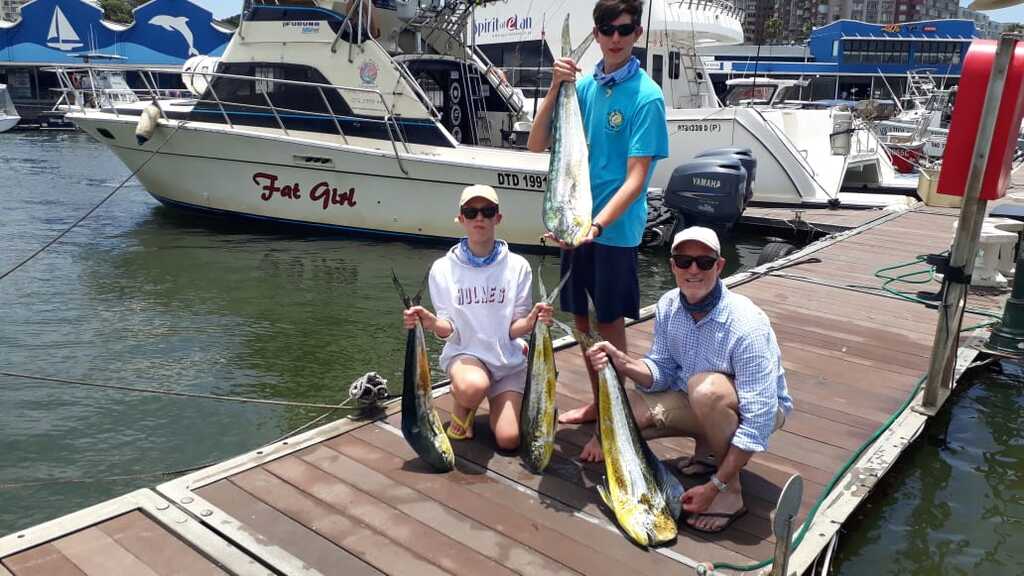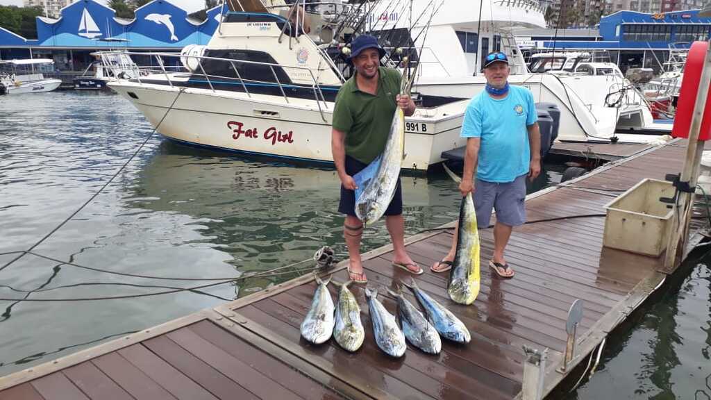 Fishing has been great this season with good fish being caught on all trips, the Dorado have been thick with many being caught, there are also some nice Yellowfin Tuna about and finally the Wahoo have arrived, when the Wahoo arrive the Black Marlin are also around. Yesterday Fat Girl crew managed to land an awesome 1st Wahoo for the season weighing in at 17.5kg, and whilst they get much bigger in other parts of the world for Durban this is a good catch as they usually average 8-12Kg. With today not wanting to be outdone by yesterday the Fat Girl crew managed to hook up and release a small Black Marlin just past the south pier whilst clearing lines to enter port. This Marlin was a first for angler Giulio and so a huge congratulations to him. For Skipper Erik’s son Ruben who has been working as a deckhand for us during his school holidays it is his first interaction with a Marlin and he saw it chasing the kona whilst clearing lines and teased it to perfection to get the hook up and so a huge congratulations to him, how awesome for him and his dad to share a memory like this together. This Black Marlin is also the 4th Black that has been caught on Fat Girl in 2020 in the shallows between no.1 reef and the harbour entrance as we had 3 before the lock down in the shallows and just shows that one does not need to travel far in Durban to catch Marlin. I take this opportunity to wish all for 2021 and stay safe.