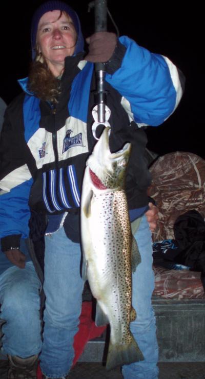 BIG walleyes and brown trout continue to bite well along the shoreline of Lake Ontario. The last few weeks has been very good slow trolling stickbaits at night. Water temperatures have been ideal- 56-58 degrees. Last night we boated 10 big brown trout and 5 nice walleyes. Day charters fishing for brown trout are still doing so/so. One good day then the next is tough. There's been alot of bait along shore lately. A few king salmon and steelheads are starting to show up in deeper water. We have plenty of open dates for spring & summer walleye, salmon & brown trout trips. give us a call-315-298-4530
