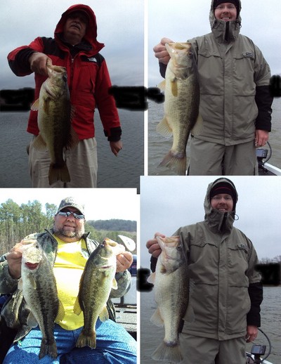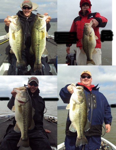 Last week was slow during the beginning of the week with the bigger fish really moving up later in the week. The first few days were hit and miss on numbers and quality. As the week went on the fish realy moved up with Friday and Saturday catching 40 fish with a 9lb 1 oz and 8lb 13 oz being our big fish. One day we had best 5 30 lbs and the next we had 28lbs. It seems like the lures doesn't matter catching fish on jerkbaits, traps, spinnerbaits, Big Bass Baits soft plastics, shallow and deep crankbaits, and Choo Choo Jigs. The main thing is fish staging areas where fish are moving to right before they go on bed. The seem to be in groups according to size which is fun when you start catching 4-6 lbers. The fishing should only get better as more fish keep moving up. I have days open in May.