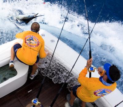 Yesterday proved to be another great day of fishing for the Cutting Edge, and the Tournament Boat I run the Get Lit. Cap Running the Cutting Edge had 8 Sailfish fishing off the Light and off Triumph Reef. The fish he had were mostly seen in 150 Ft. of water and tailing south. Alot of the fish are tough to get a bite out of but eight fish in a day is not bad. I was fishing south off ocean reef were the fishing was not as good on the kite but were there were more tailers. We were out practicing for the up coming tournaments, primarily the Capt. Bob Lewis Billfish Challenge which is the first week in March. Were were roaming the edge looking for tailers and found alot as did Cap but most would not eat. We Were able to get 4 out of 10 or 12 fish seen. And four to the boat and released out of 7 bites. Today Cap is out on the Edge looking for another day of great sailfishing. We are open Saturday if you need a boat on short notice. We were cancelled last night.