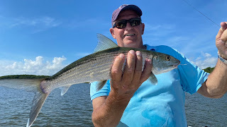 Jim and his son in law Arturo were scheduled to fish with me yesterday but we had some nasty weather all day yesterday so we rescheduled for today. That was a smart move as the day was gorgeous today. The fishing, well that was a different story. We started off fishing for snook, a slight detour from the intended target of bonefish, since it was tough to pass up snook crushing schools of mullet all around us. We threw lures and live mullet and couldn't buy a bite. Many times with so much bait around it's tough to have locate your one offering in the middle of thousands of other baits. Ok, no worries we move on to bonefish where it was also pretty slow but eventually we found some fish and Jim hooked up only to lose the bonefish at the boat. A while later Arturo also hooks up and the fish also comes off near the boat. This is getting frustrating! Ok, new spot and we draw a zero. Last spot and Arturo quickly hooks two fish and they both come off next to the boat plus he got a couple of bites that never got hooked. Dang it! Well, with minutes left before we head in Jim hooks up and lands his first bonefish for his birthday. Whew! A bit later we called it a day going 1 for 5 on bonefish. It was a tough day but I'm not complaining!