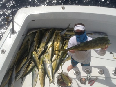 Great day of fishing yesterday. David celebrated his birthday with the Cutting Edge Fishing crew. Cap Hinckley and mate Mike Lawson finished the day with their limit of dolphin! Way to GO!!!!