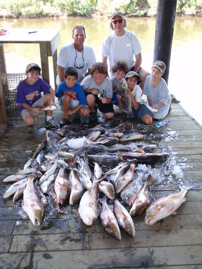 Birthday fun Sunday on the Beach. Max wanted to go fishing for his birthday. His dad Alan brought him, his brother Eli, and friends Gordy, Grant, James, and Rajan. Alan's friend John jumped on to help with the kids. Capt. Mark took half the group and I the other. We fished in the Lake Machias area and the kids had a blast filling up the fish boxes on both boats with Trout, Reds, and Drum. We fished with Campo's live shrimp both under a cork and on the bottom. Lots of fun was had by all and the kids took home gallon bags of fillets for party favors. My kind of party.
