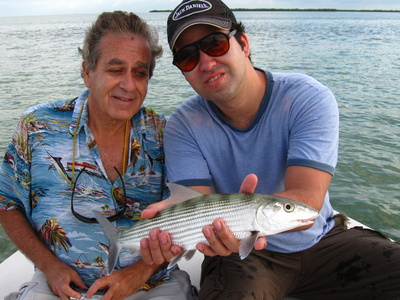 Today I had the pleasure of fishing with Jack and his father Henry. They are both offshore guys and have never done any flats fishing but wanted a taste of the hunt for shallow water fish. The morning started overcast and breezy so we positioned ourselves out of the wind a bit and started our search for Biscayne silver in water less than what their boat drafts. Immediately after jumping onto our first flat of the morning a couple of nice big wakes headed toward us, a sure sign of big fall bonefish. Unfortunately, that opportunity didn't work out. But not longer after, Jack connected and landed his first spunky Biscayne bone. A few spots later and with thunder storms threatening we hurried back to the ramp. One of my great thrills of guiding is when my client on the bow lands his first or biggest of the target species and today was one of those days.