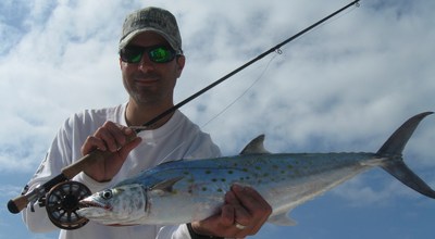 Winter time is in full force in Miami right now and if you brave the seemingly constant 20 MPH winds, there is plenty of action to be had. The last few weeks I've been concentrating my efforts on fishing for mackerel on fly and having a blast. Here is a pic from a few days ago. They key for this type of fishing in deeper than 20' of water is using an intermediate sinking line and clousers. Often the macks will hit right on the surface but other times throughout the day they will go deep and that's when the sinking fly line helps keep the action going. If you head out for some macks on fly make sure you do several things, 1) bring plenty of flies as those teeth make short work after just a few fish, 2) add about two inches of light wire trace as a bit tippet, 3) strip the fly fast and 4) be patient, if the bite stops keep looking for them by going back to the general area you were finding them and letting the fly sink to a count of 20 to 30 or more. Moving away from mackerel, some of the biggest bonefish of the year are out prowling the flats, these are very smart fish so make long accurate casts and give them a long lead so as not to spook them. The finger channels will hold an assortment of snappers, mackerels, and some groupers (remember there is a grouper clouser), the west side of the bay will hold snook in the creeks and trout in the deeper grass flats. The patch reefs in 10-30' of water can be red hot and the murkier the water the better. Enjoy the super bowl tomorrow and get out there and make that drag scream!