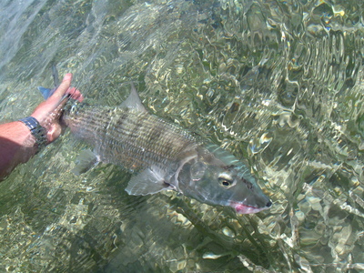 Efficiency has been the name of the game this past week. The bonefishing has been really slow in Biscayne Bay requiring the angler/guide to make the most of each opportunity. Yesterday I had Danielle and Greg from West Palm down for their first trip to Biscayne Bay with high hopes of catching their first bonefish. We began a with a couple of schools of permit too scattered to get within reach. Quickly switching to bonefish we worked the oceanside flats finding just a single here and a single there. Finally a school moves through and Greg makes his cast, way to the left of the moving school. A second later I give Danielle the location and distance of the school, he makes a great cast and the reel starts to scream. With one bone in the boat, a $40 bet on the line and lots of teasing from Danielle, Greg was ready to redeem himself. With the tide almost at slack and time running out we set up on a channel edge and a bit later, Greg is one, reel screaming and a big sigh of relief is heard. With two bones in the boat on a very slow day we head in having accomplished what these two good guys came to do and their friendship still intact.