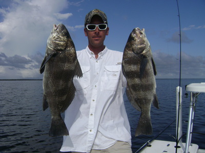 Black drum are still on our flats in the Mosquito Lagoon and put up one good battle on light tackle, almost better than our famous redfish. Perfect size schools are going between 40-60 fish and are hanging pretty tight together. Redfish, jacks, and even bluefish seem to be "tagging" along with them. Sometimes when you make the cast to the school and hook a fish expecting a black drum, you could be in for a surprise! Even though you will see the drum within 20 feet from your boat. Of course I cannot give away where they can be found, but give me a ring and we'll take em' on!!!