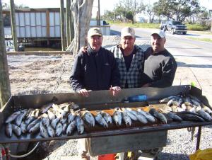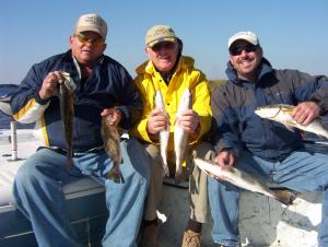 Dennis, Eddie, and Richard were aboard my boat along 2 tag along boats today. These guys fish with me every fall and know the area but had not been out since the storm. We headed out into 20 mph NE winds BLOWING to say the least. Found some birds diving and got on some trout but not a whole lot real slow. So I moved the armada to another lake and found some trout along the lee shore. Live shrimp and plastic under corks was doing the job. The bite was slow but steady one every few minutes but on a day like today we had to hang with it. Finnished up at around 2 pm.