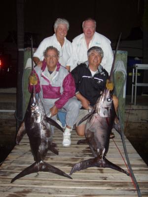 I also managed to go swordfishing two nights and caught swordfish on both nights. The first night we caught 2 swordfish and lost one that was estimated at over 300 pounds. The best part was that all this was done by 8:45 and the anglers were so exhausted and had enough sword steaks to last forever, that we were back oat the dock by 9:45. The next swordfish trip was a sailfish/swordfish combo trip and the lucky angler got to catch both species.