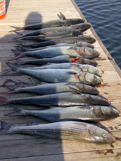 Loaded up the boat with a few 5 gallon buckets of peanuts and had a full live well as well. Had Grady Dave and Johnny Rod Bender along for the ride, Had a buddy at work ask me to get him some blues and if possible a bass ( yes he's Asian)well we had all the 8-12 pound blues you wanted we added a keeper striper and a nice Albie (released)to the days catch. Fished the rocks area chummed heavy and had fish in the slick the entire time. Ocean was nice not bad at all the bay was kicking up some on the ride back to Keyport we were all very happy with the ride in rough water.