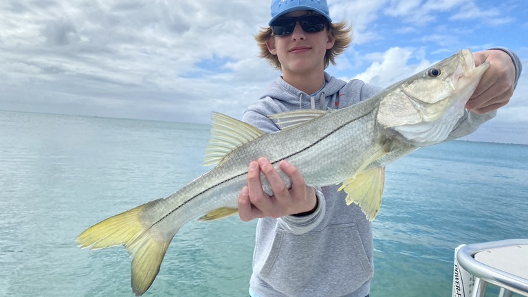 Wow, not like the rest of the country but we got hammered by this winter storm in Miami, by Miami standards. One day the fishing was on fire with water temps in the mid 70's and bonefish everywhere and then we got hit on 12/24. The air temps were in the low to mid 40's for about 3 days and barely reaching 55 the next few days with constant cloud cover, drizzling rain and high winds. What this did is drop the water temps to a freezing 59 degrees and not much likes to be in 59 degree water. I have to admit, my anglers toughed it out and it all worked out. I had one trip on 12/26 and then 2 trips per day 12/27-12/29 and a half day on 12/30. The pattern was find deeper water fish deep and take a break from bonefishing. And the other pattern was better fishing during the outgoing tide which was always on the second trip of the day. This was odd as the water temps were the same but hey, they're fish, I'm not and they always keep me guessing. Anyway, the highlights were snook on live bait, lots of jacks and muttons snappers in the 10-16" range, a bonefish caught in a channel fishing deep (where I expected them to be trying to stay warm) and an assortment of others species including a warmer day on the 30th that had some small tarpon show up but refuse to eat. It's been a tough weather week but with great clients and enough action to keep them happy.