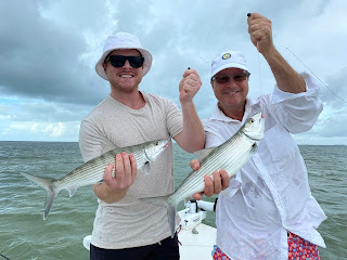 It was Worth's birthday tomorrow so he got to fish with his dad Steven today. The guys just wanted to catch some fish not caring what it was. Well, we had to work it. The spots we fished were slow, at least not what I am used to. The TN guys were hooking fish such as jacks and snappers but it was not red hot as I expected. With 40 minutes left I told them we would go for the home run and bonefish. Well, well that worked out. As the trip was coming to and end and the rain bands began to move in the guys hooked four bonefish and got a double header in 15 minutes before we headed back trying to outrun a few storms. WOW!!!!