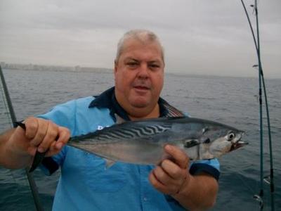 We started out by trying to get some live bait, but there was nothing to be found and so I set a spread of 6 small lures, I headed south along the back line and let out my 1st lure and was busy with the second and as the boat got to speed we got a hit on the 1st lure and landed a nice sized Eastern Little Tuna. This got my hopes up but we got no more hits and trolled all 6 lures for some time when the deep runner got hit and we landed a nice Sarda Sarda.