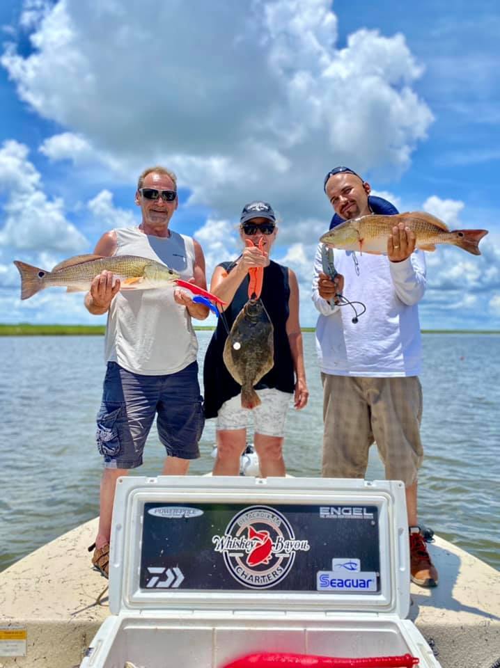 Don, Cat and Jeff hailing from Chicago, IL were aboard the Majek for their turn chasing these Delacroix redfish. We got on an early bite catching 10 quickly plus a bonus flounder. We caught and released until they were ready to call it a day. A great day with a great crew !!