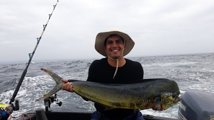 The big west late yesterday flattened the sea and today was reasonably nice conditions, overcast with a reverse current. Water temps is up to around 23deg.C and is starting to clear nicely. We had an upcountry family with us today on Fat Girl for a short morning trip and we landed 2 very nice sized Dorado (Mahi) Bulls and were back on the dock by 10h00.
