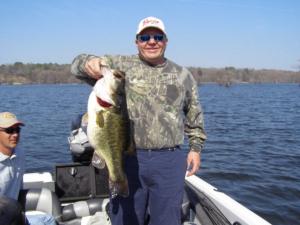 Not much has changed over the past couple of weeks, we are still pitching worms like a 9 inch Super Ringer or 11 inch Hog Wild in colors of red shad(stained water) or plum(clearer water). A 1/4 oz. weight in most situations has been working well but once it gets hot with a bright sun I have sometimes had to go to a heavy 3/4 oz. weight and punch it through the deeper(5-7 ft.) heavily matted grass. We have also been catching them on a Pork Shad(fluke) in watermelon and junebug(stained water) colors.