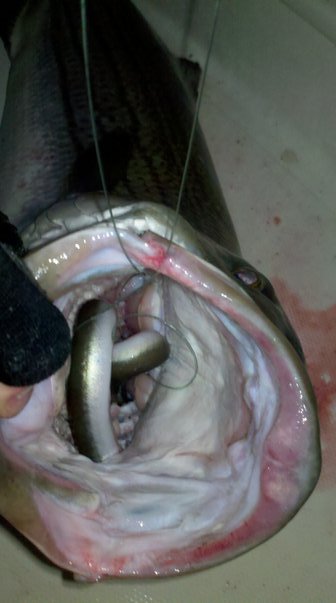 The 25 pound bass was so aggressive it had eaten Brett's eel and Austin's eel. Not only that but one of the eels had been previously chopped by a bluefish before getting hammered by the bass. That is a first for me!