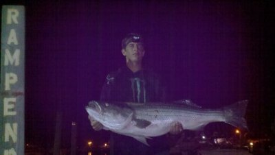 Final tally was around a dozen bass from 10-35 pounds and a few chomper bluefish. The guys had enough by 11:30pm, allowing me to get some much needed rest!