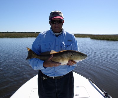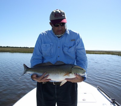 Falll has finally found us! With night time lows dipping into the upper 40's and surface temps in the shallows ranging from 65 - 72 degrees, the Redfish in the Lower Cape Fear basin are beginning to gather in much denser schools as the nutrient rich water of summer starts to clear and bait becomes a lot more scarce. We have been targeting large schools of upper to over slot fish ( 6 - 12 lbs.)on small patches of fertile mud flats adjacent to deeper channels with great success. The topwater bite has definitely slowed, with better shots occurring late in the afternoon on a falling tide. However, these fish are aggressively feeding on soft plastics , spoons, and spinners. As usual, Berkley Gulp! baits like the 5" Jerkshad have been accounting for most of the fish, along with 1/4 oz. spoons in copper color. An additional bonus to these trips are the Bluefish blitzez that are occurring daily out on the shoals as we make our way back after a productive day of Redfishing. You can literally catch blues until your arms fall off! There are still dates available for Reds on the flats, and we will be running plenty of Trout and False Albacore Trips as well. God's Blessings and Tight Lines - Capt. Todd Streeter