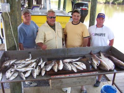 With all the wind we have had to stay inside. The trout are there but scattered but the redfish and drum along with some flounder have been steady. Some days we did well on the trout and some better on the reds but have been able to build a good box full of fish almost every day. Know how to catch'em. Dead shrimp on the bottom in the holes for drum and reds and on the points with moving water under a cork. The trout have been in the deeper bayous on the bottom with live minnows and croakers if you can get them the trout will gobble them up. Birds have been working in the mouths of the pass's early but a lot of throwbacks but good action.