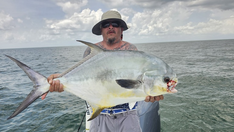 Permit fishing is red hot right now. The shallow wrecks that are just offshore up and down the coast from Naples, Marco Island, down to the Everglades, are full of life All kinds of turtles, schools of tropical spadefish, silvery lookdowns, giant barracuda circling just below the surface. Who knows what lurking below, just out of sight. We go out there to target the permit.