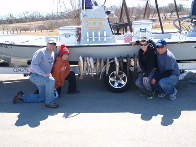 Had Erick P. and party out Saturday 2-12-2011, we started the morning with very cold air temps and water temps in the 50's did not bother the fishing. We caught good numbers of Catfish and 1 Freshwater Redfish 21 inches.
