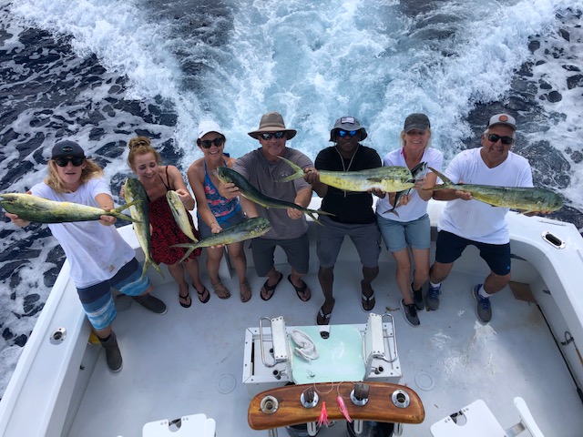 We stayed on the broken weed line for about a mile, and we headed south, fishing the offshore side of the rip. During that time, we caught another 3 to 4 Mahi Mahi’s. All these were decent fish weighing between 8 to 10 pounds.