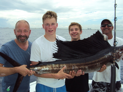 Kevin Cornelius, along with his two sons, Marcus and Austin, from England chartered the Top Shot Sportfishing charter boat team to do some deep sea charter boat sport fishing in Fort Lauderdale, FL. As the Cornelius family boarded the boat, they were welcomed by the Top Shot Sportfishing team. The boys remarked that they were looking forward to this fishing experience in Fort Lauderdale. The temperature today was in the mid 80’s, with east winds at 10-15 mph.