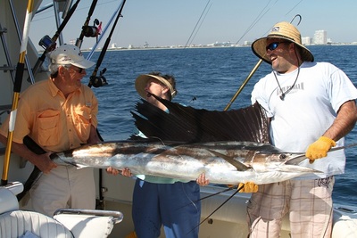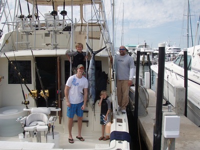 Fishing in Fort Lauderdale was great today. We had two half day fishing charters, an 8-12 and a 1-5 trip. George, his wife and Bob were the early birds who came fishing in the morning. The Blackfin Tuna were active on the troll and sure do make for a tasty meal. After trolling for a bit we moved into kite fishing in 90 ft of water just south of Port Everglades. The bite was slow, but we finally got a hit on the left short bait. Captain Paul was able to set the hook and get George rockin' and rollin'. Everyone on board watched the show of a lifetime from a nice size Sailfish jumping all over the ocean. George won the battle and brought the fish all the way to the boat. Perfect timing, too. We had to get back to the dock for our 1PM fishing trip.