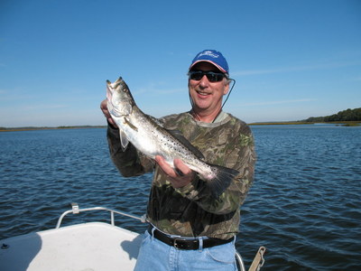 It's some of the easiest fishing I do all year. You don't need to mess with live bait at all. I use a quarter ounce jig head with white and green 4 inch curl tail plastic bait. All you have to do is bounce it off the bottom real slow. Once you get the first few fish and figure out how to work it you will catch a Trout almost every cast.